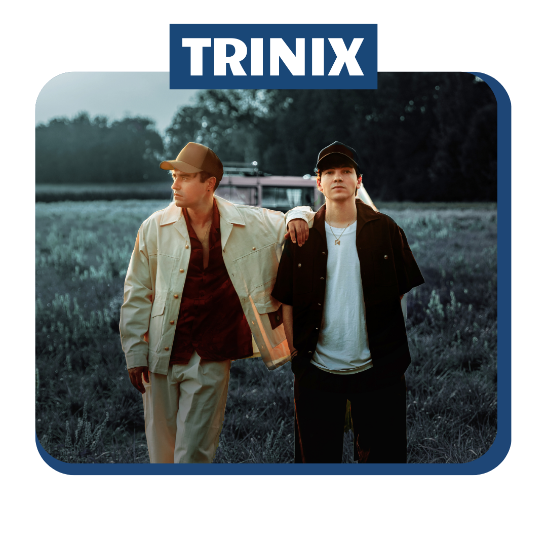 Déjà single de platine avec le titre « Emorio » et diamant sur de nombreux morceaux, le duo enchaîne les succès, en streaming comme sur scène. Après avoir rempli l’Olympia et le Zénith de Paris, TRINIX s’est produit sur les plus grandes scènes françaises et européennes (Tomorrowland, Solidays, Vieilles Charrues, Paléo…), toujours avec la même énergie contagieuse et une expérience live hors du commun.